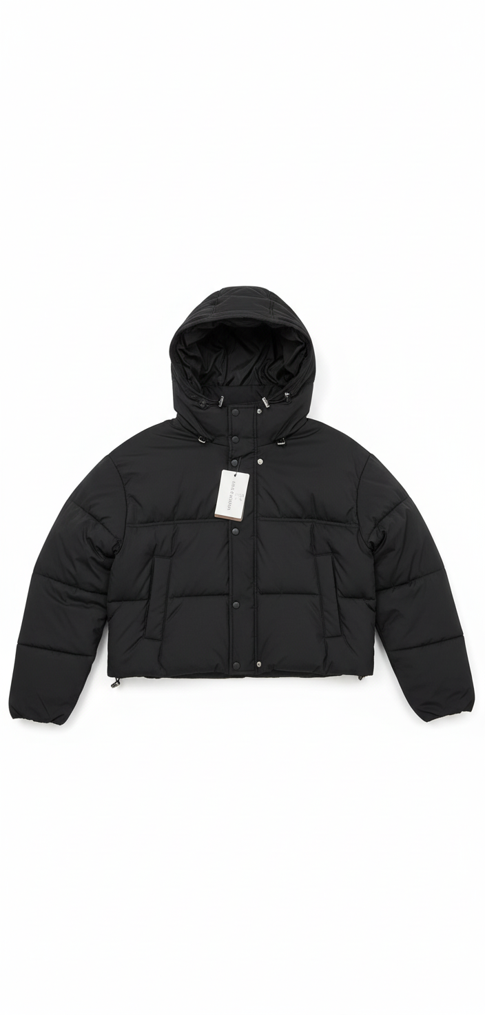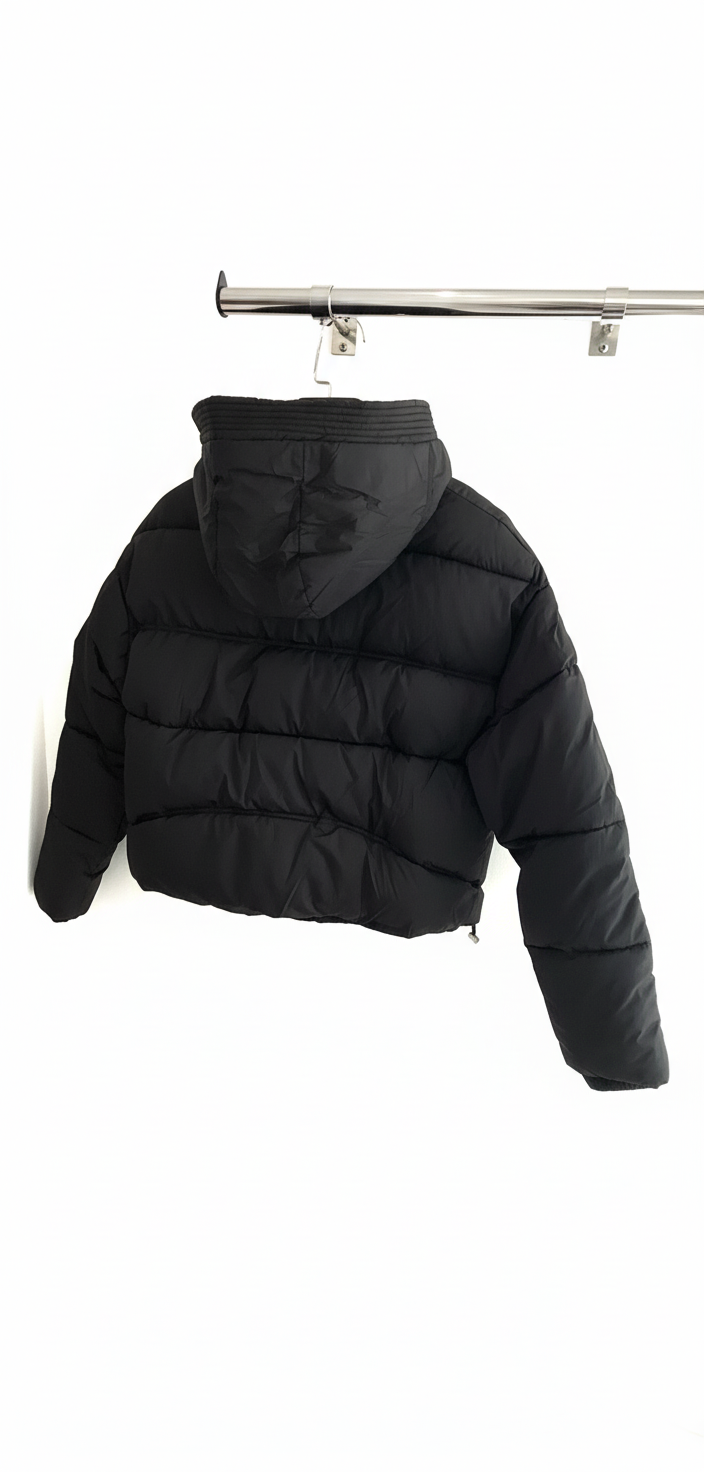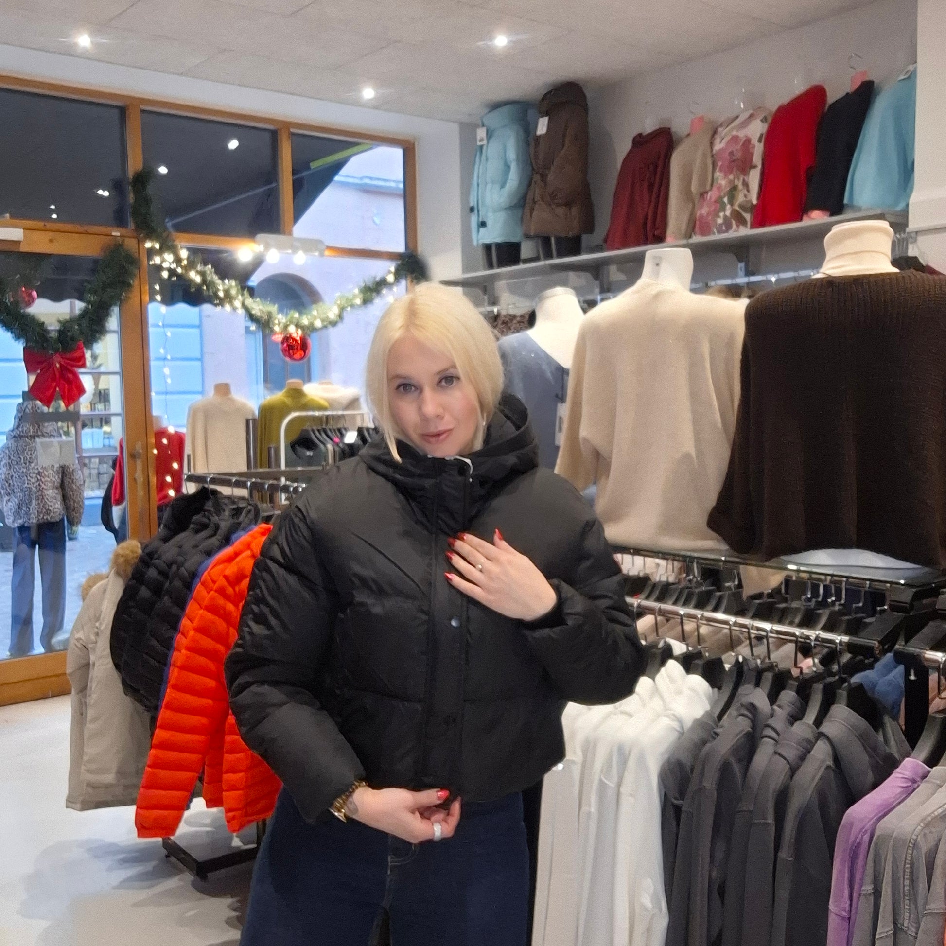 Denne moderne sort korte jakke er den perfekte tilføjelse til din garderobe. Med sit elegante, minimalistiske design og kortere snit passer den perfekt til både casual og mere formelle outfits.