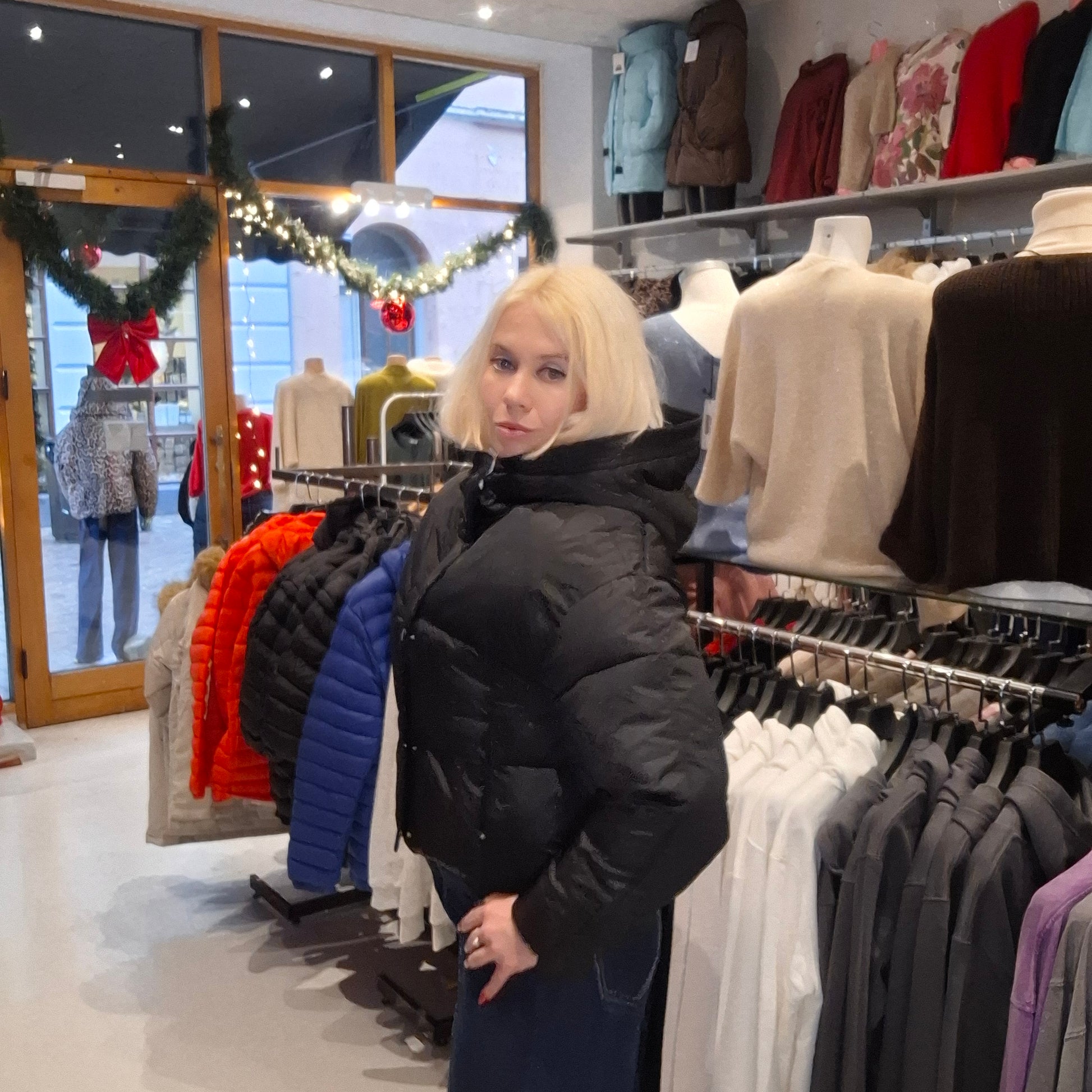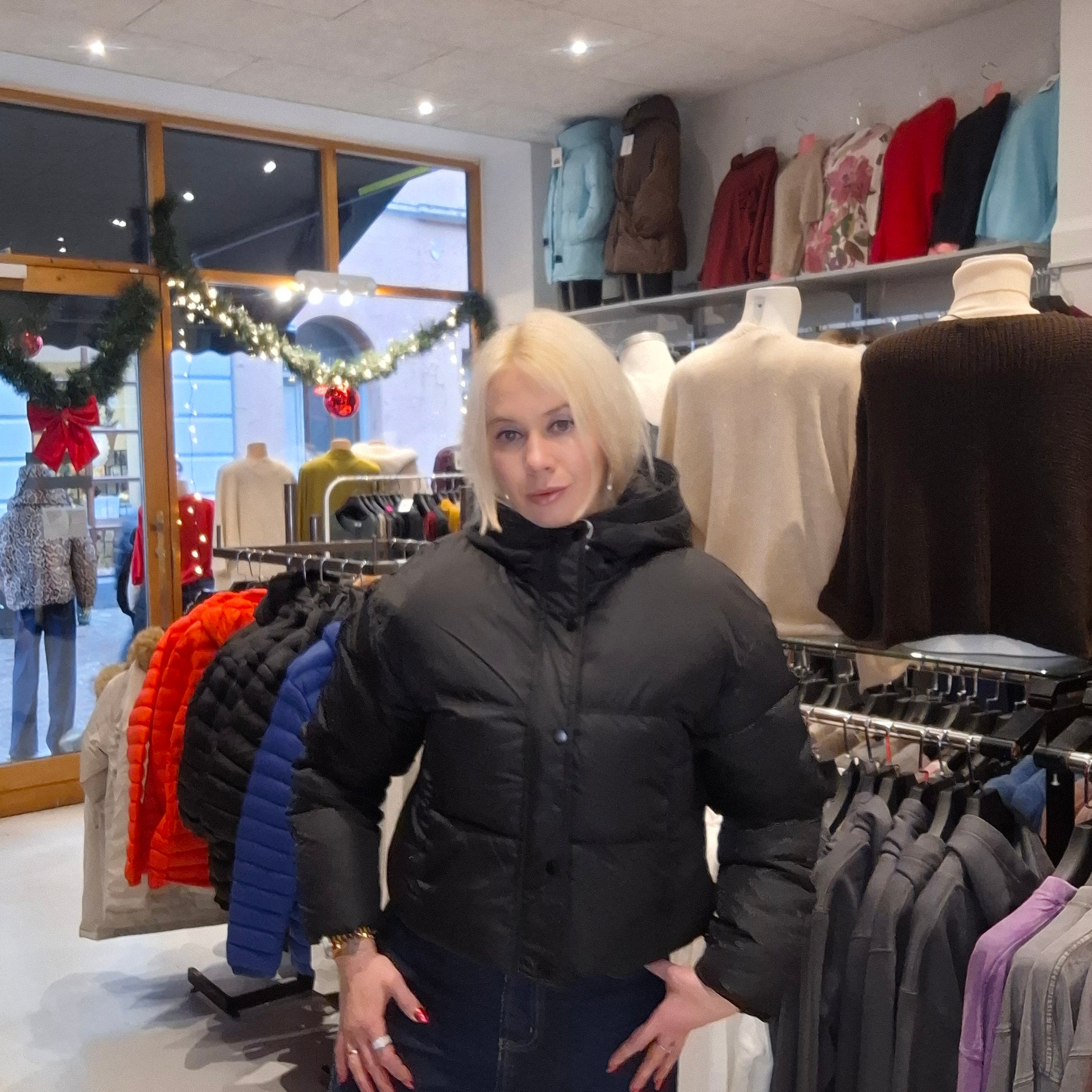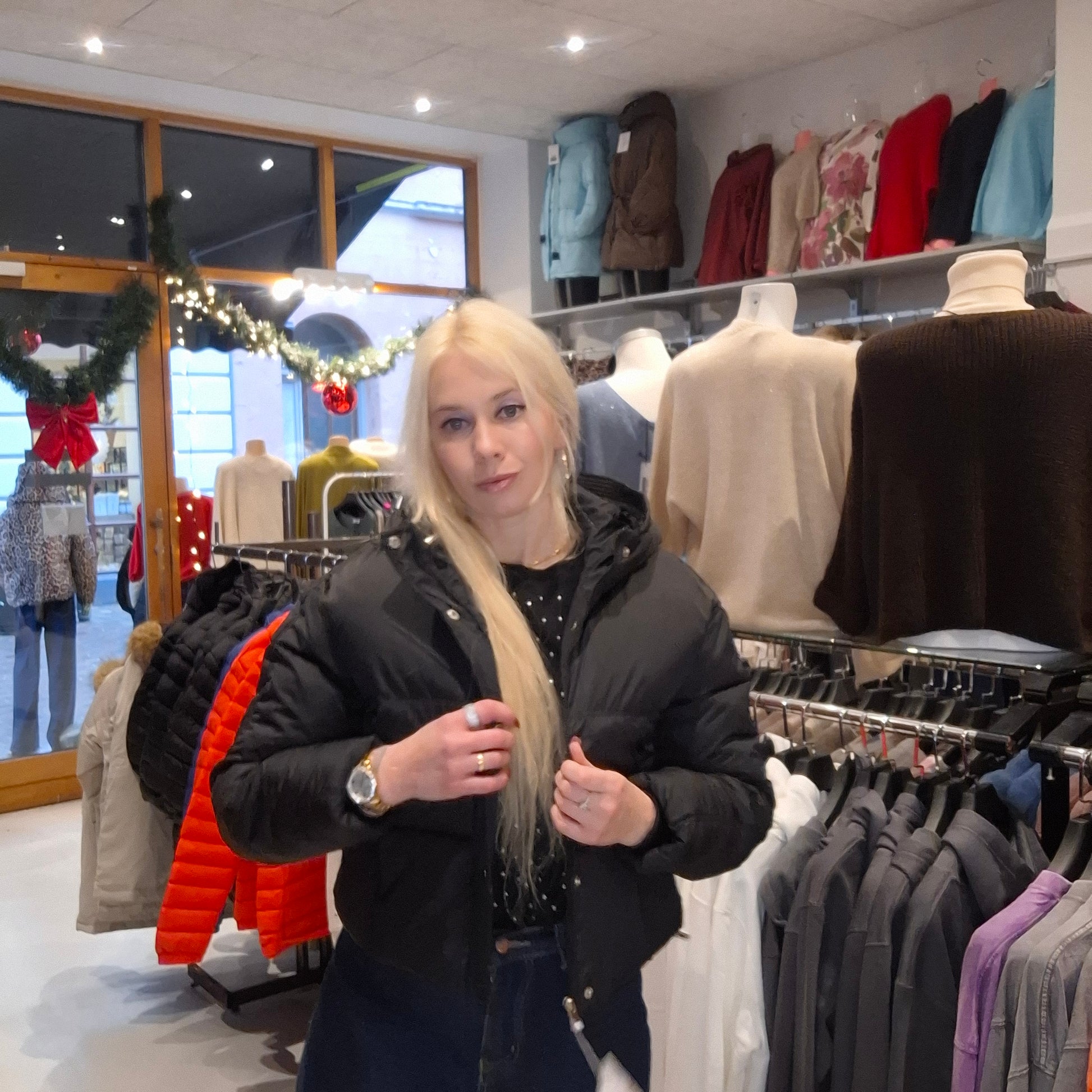 Denne moderne sort korte jakke er den perfekte tilføjelse til din garderobe. Med sit elegante, minimalistiske design og kortere snit passer den perfekt til både casual og mere formelle outfits.
