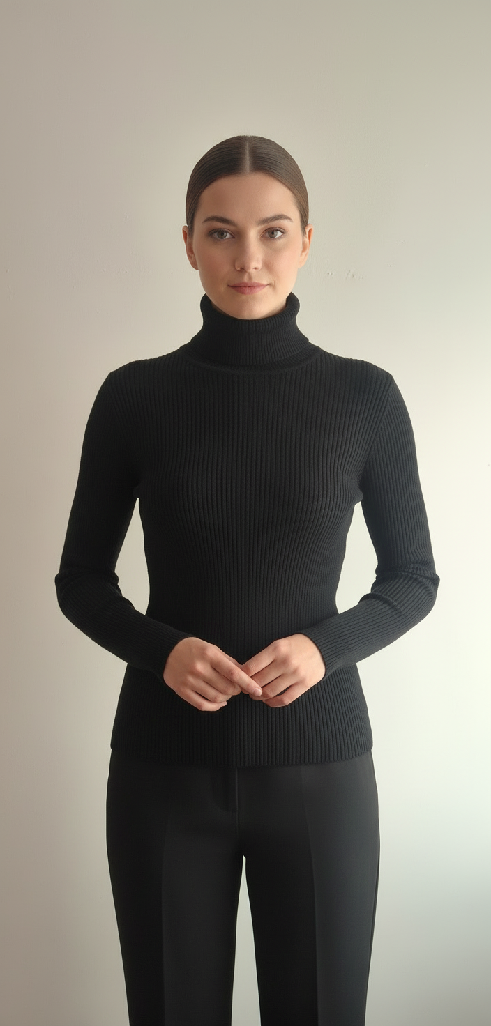 Elegant dametrøje med rullekrave i one size, der passer perfekt til størrelserne XS, S og M.
