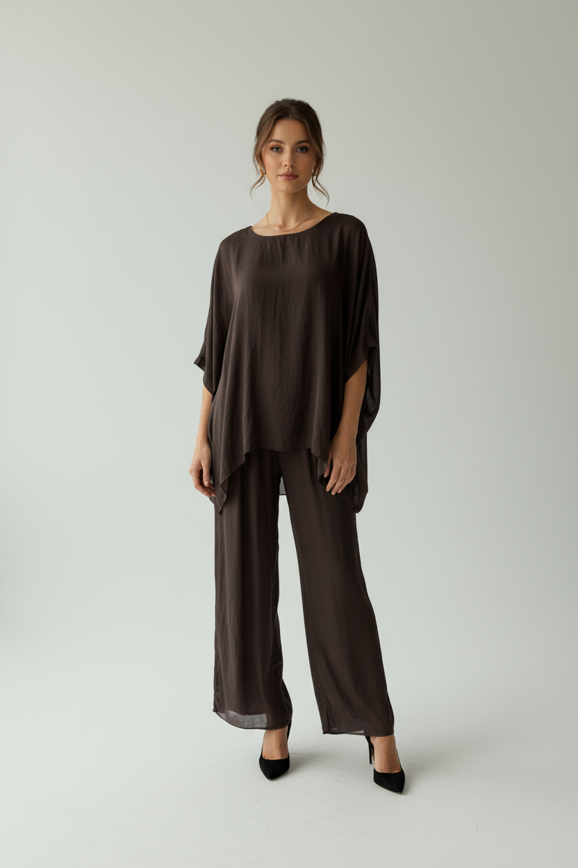 Brun Silke bluse made in Italy. Størelse S og M